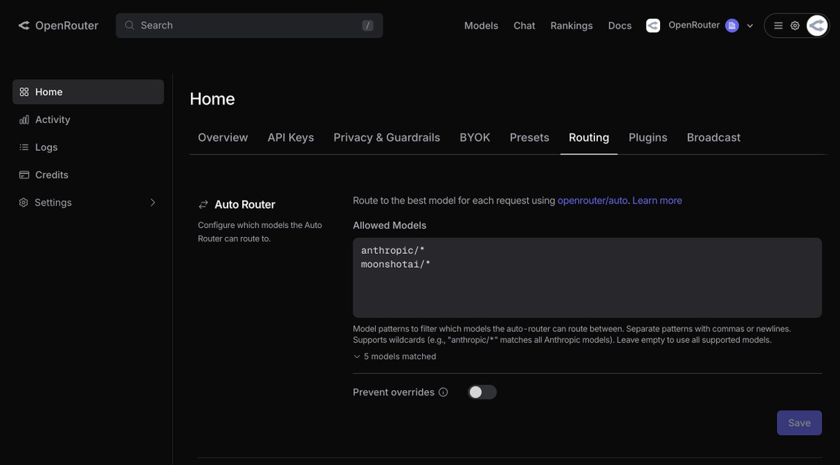Not sure whether to route to Kimi K2.5 or Opus? You can dynamically select based on your prompt using the Auto Router Visit https://openrouter.ai/settings/routing to constrain the allowed models, or set them via API
