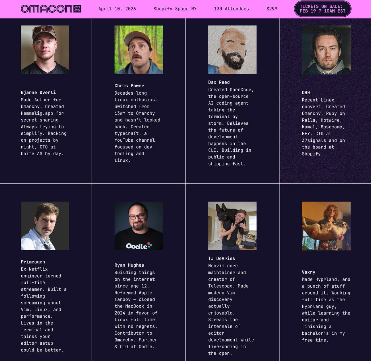 Omacon is happening April 10 at the Shopify SoHo Space in New York City. Eight great speakers, 130 attendees, and a guaranteed good time with folks who love THE NEW LINUX VIBE. Tickets go on sale in 24 hours. Set your alarm! https://omacon.org