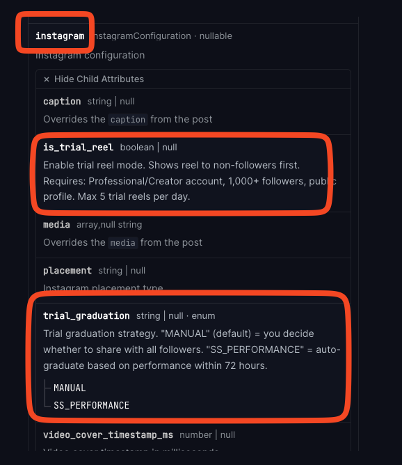 reminder that you can publish instagram trial reels through the @postbridge_ API AND push tiktok's as drafts then add music from in app ask your openclaw to remind you 5 mins after posting to send you the caption to copy paste in + use trial reels to expand reach on IG