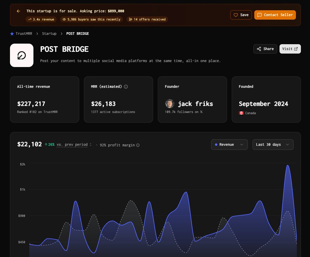 taking my business @postbridge_ down for sale now, as i’m about to make it the best agentic software this year for social media tooling and that means selling for less than $1,000,000 is pocket change.