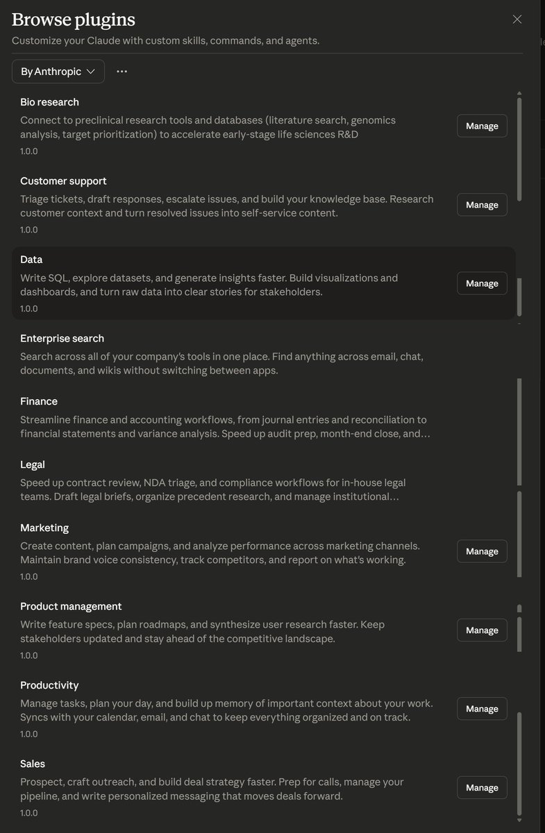 To get an idea of the near-term future of work with AI, take a look at the official Claude Cowork plugins, which give the AI specialized knowledge for various hard tasks A natural successor for GPTs, but built for agents (& therefore much more scalable & customizable for firms)