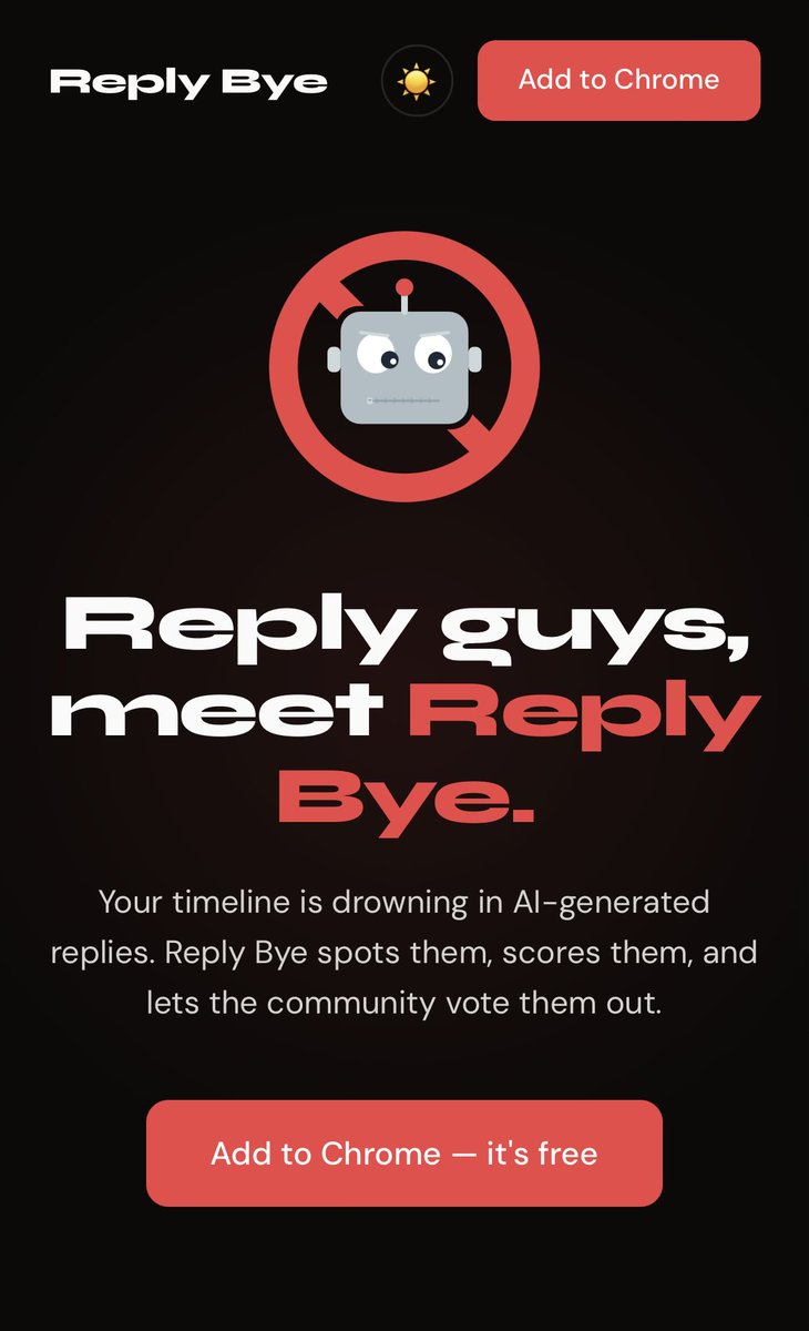 The animated logo and landing page for Reply Bye was built 100% by prompting Opus 4.6 Easter egg: move your mouse around fast and see what happens… http://replybye.run
