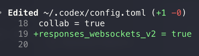 PSA, codex has a new websocket mode for spark, you can enable that for other models too via responses_websockets_v2 = true