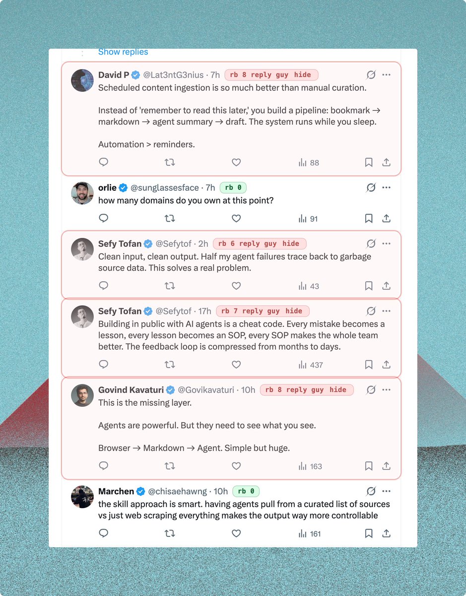Built myself a tiny Chrome extension called "Reply Bye" to highlight, hide, and/or block AI spam reply guys Bye reply guys 👋