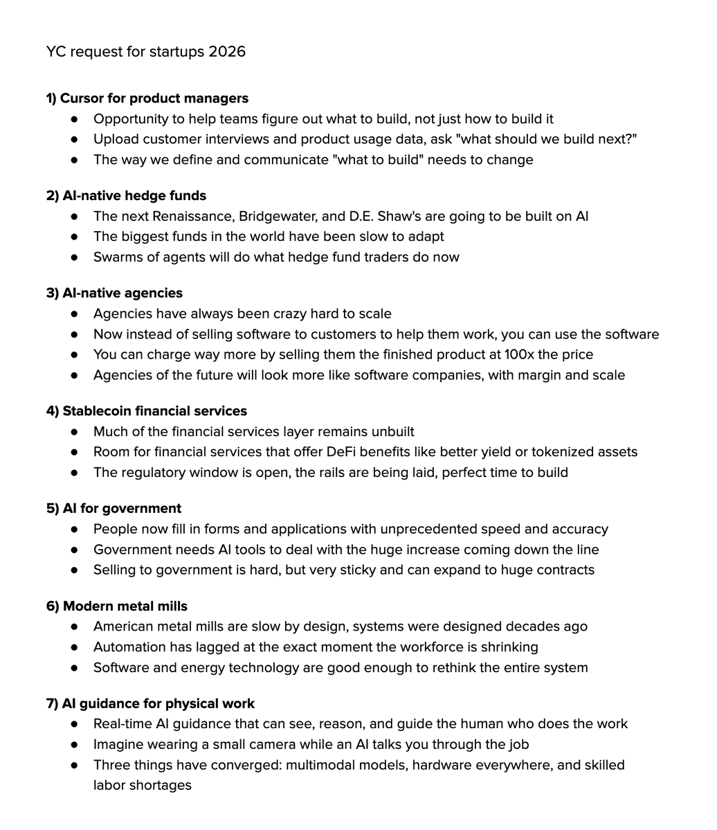 A16z and YC Startup Ideas for 2026