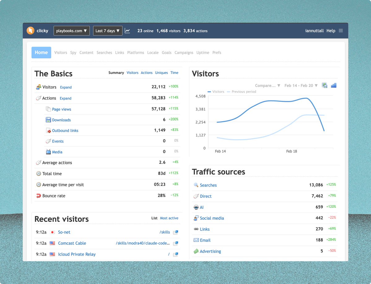 Traffic is absolutely COOKING on http://playbooks.com right now 📈 - 4k daily visits - 10k daily pageviews - 3.6k weekly `npx playbooks` downloads I don't do paid social posts ever, but if any AI companies or devtools want to advertise, you can: https://playbooks.com/advertise