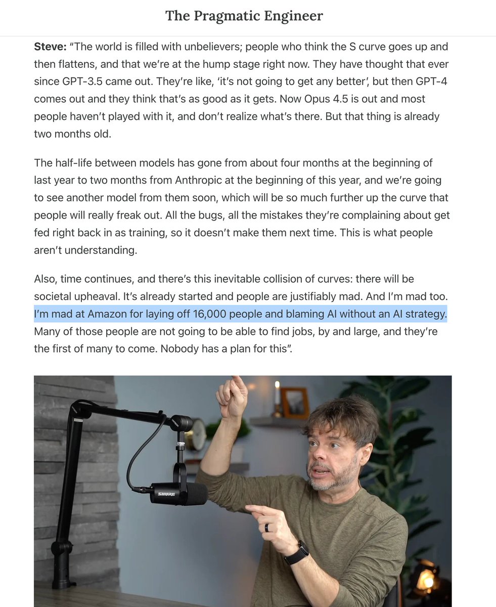Once again, @Steve_Yegge talks truth to power. He also has a history of being right, quite a lot. Including calling it mid-2025 how writing code by hand will be over, and late 2025 how agent orchestration will be the next hot topic with AI coding. Full: https://newsletter.pragmaticengineer.com